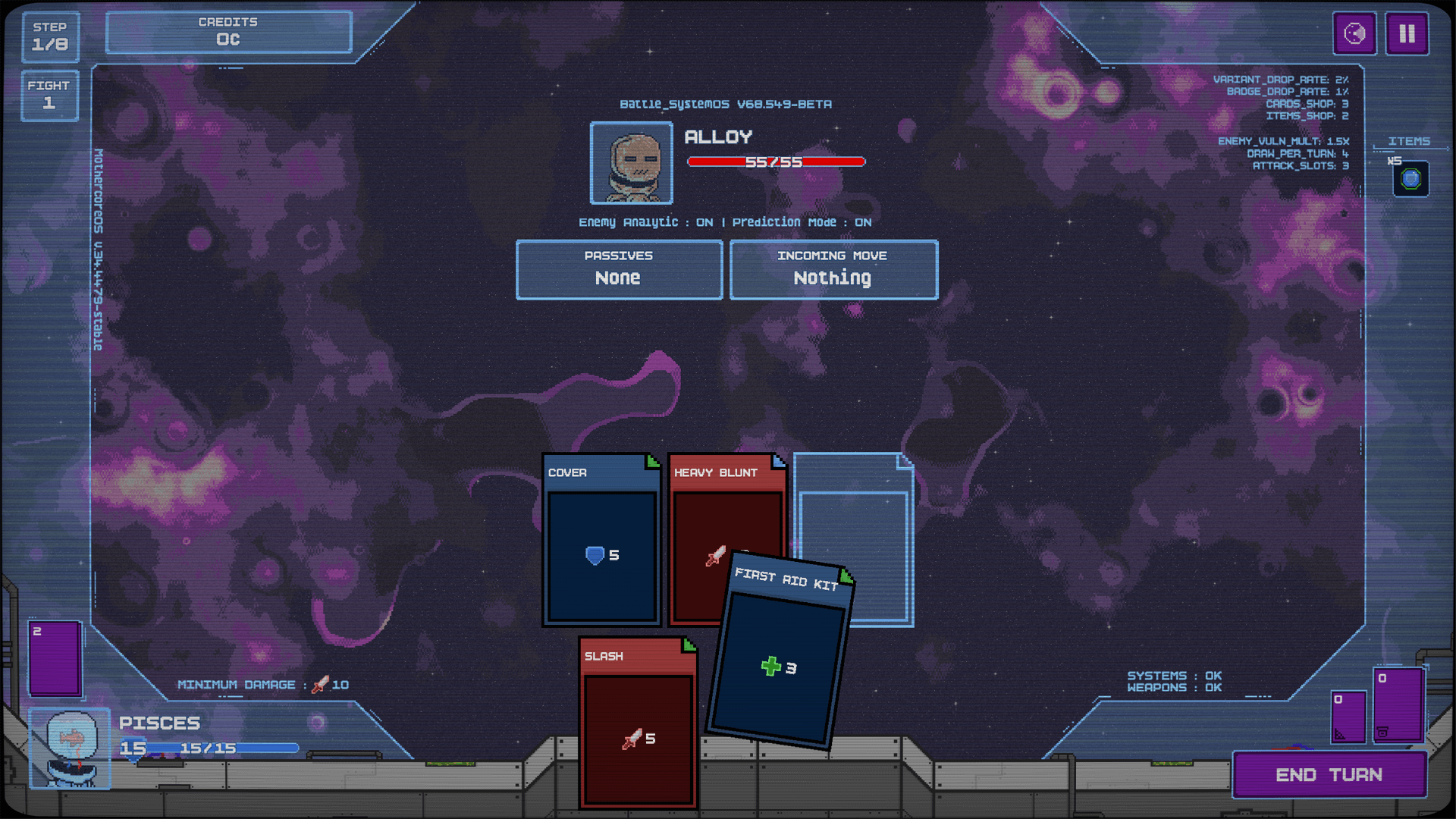 Combine unique cards and items to create synergies, decks, and beat the hell out of your enemies. Protect yourself to survive one more turn? Annihilate your foe with no mercy nor delay? Choices are yours. Optimise your build to reach the center of the Nebula, face the final boss and win the game.